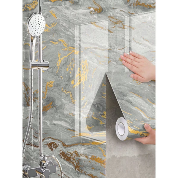 1 Tekercs Vízálló Aranyozott Márványmintás Tapéta, 45x500 cm, Szürke 35703384-SZ