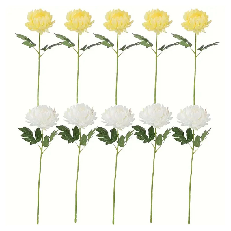 Kiszerelés: 10 db mesterséges virágszál (5 sárga + 5 fehér)