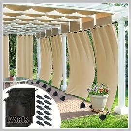 12 db Erős Szélálló Kültéri Függöny Súlyok Klipszekkel – Bézs XM1248295