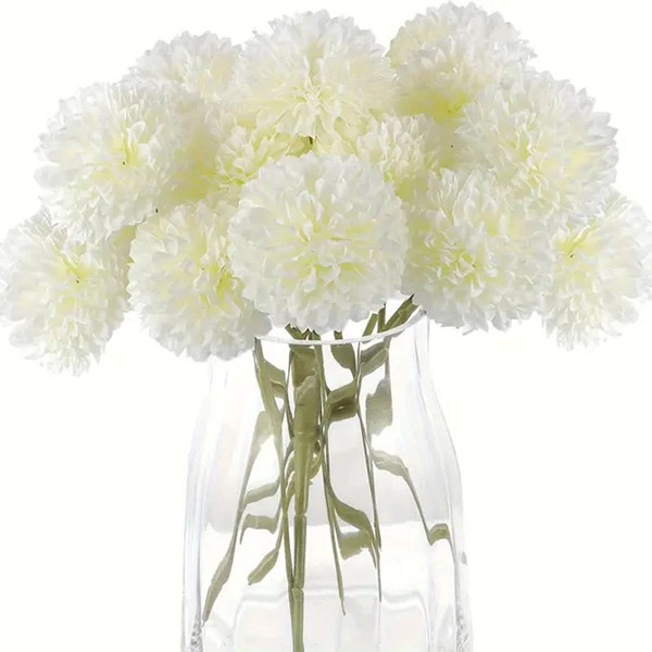 Elegáns és természetes hatású krizantém csokor, amely tökéletes választás minden alkalomra. A 12 darabból álló fehér művirág friss és tiszta megjelenést biztosít, amely méltóságteljes és ünnepélyes hangulatot teremt otthonában, kertjében vagy emlékhelyeken. Tartós és gondozásmentes megoldás, amely mindig elegáns látványt nyújt.