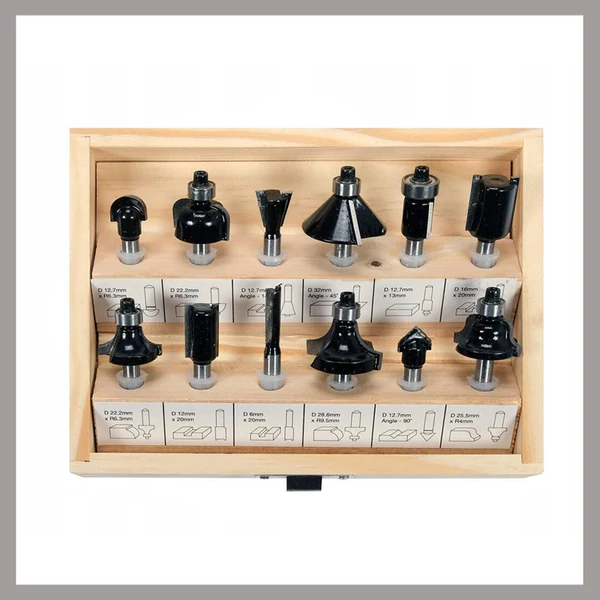 12 db felsőmarókés készlet, fém, 6 mm, fekete/ezüst TO-22552