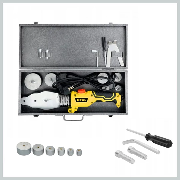 A 1500 W teljesítményű hegesztőgép polimer csövek és idomok (PE - polietilén, PP - polipropilén, PB - polibutén) hegesztésére szolgál, melyeket vízvezeték- és központi fűtési rendszerek kiépítésénél használnak. A készülék cserélhető fűtőfejekkel rendelkezik, amelyek lehetővé teszik a csatlakoztatandó elemek belső és külső felületének egyidejű felmelegítését. A hegesztőgép fokozatmentes hőmérséklet-szabályozással rendelkezik, amely maximum 300 °C-ig állítható.