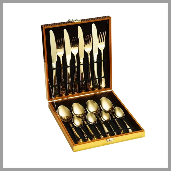 16 darabos rozsdamentes acél evőeszköz készlet, fa dobozzal 601099600756867