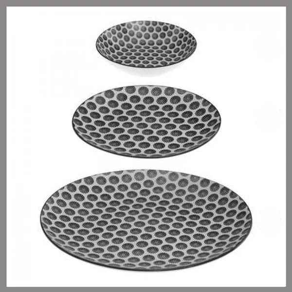 Kiváló minőségű porcelán tányérok, pötty motívummal díszítve.