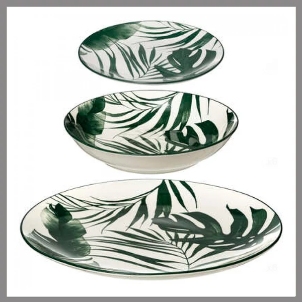 Kiváló minőségű porcelán tányérok, levél motívummal díszítve.