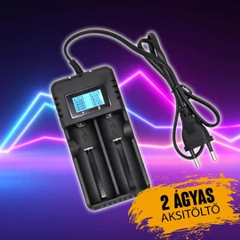 Ezzel az intelligens töltővel tölthetsz 2 x 18650, 26650, 16340 stb. akkumulátorokat. Digitális kijelzőjének köszönhetően az akkumulátorok töltöttségi állapotát is láthatod.