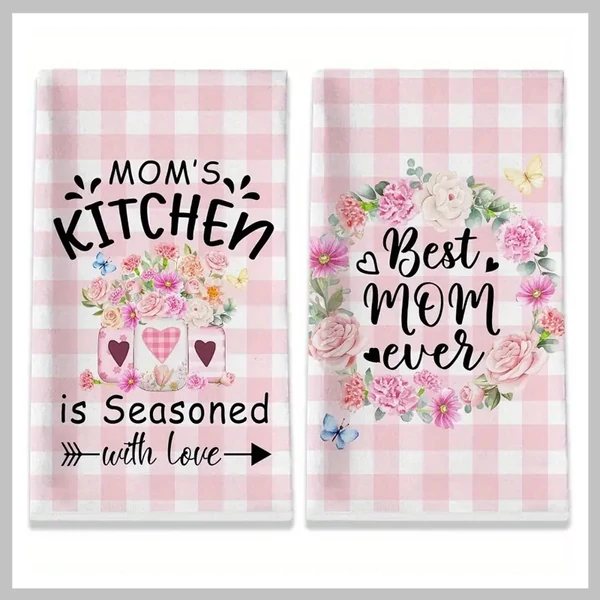 2 db virágos konyharuha – "Anyu Konyhája" & "A Legjobb Anya Valaha" minták, 45,72 x 66,04 cm, nedvszívó poliészter konyharuhák, tökéletes ajándék anyának lányától