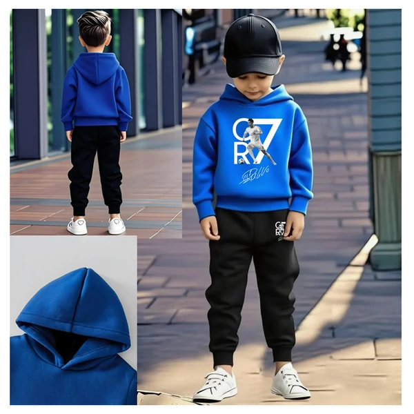 2 részes CR7 focista mintás kapucnis pulóver és melegítőnadrág szett – Kék QP4086256-K