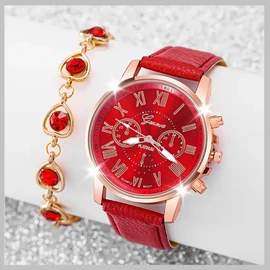 2 részes női ajándékszett karóra+karlánc piros-rose DQ734940-2