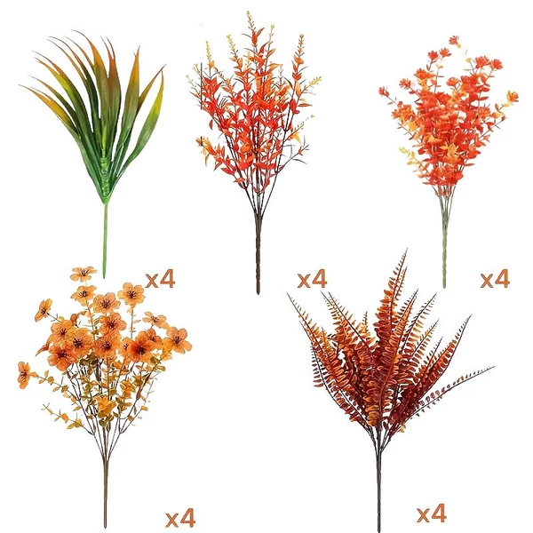 Dobd fel otthonod vagy kerted az őszi szezon hangulatával! Ez a 20 darabos művirág szett élénk narancssárga, piros és sárga árnyalatokban pompázik, amelyek valósághű és tartós dekorációt biztosítanak minden környezetben. Nem igényel öntözést, gondozást, ugyanakkor egész szezonban gyönyörűen mutat.