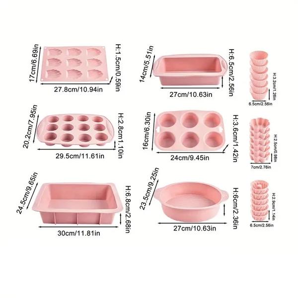 Ez a sokoldalú szilikon sütőforma szett mindent tartalmaz, amire szükséged lehet a konyhában. A különböző méretű és alakú formákkal könnyedén elkészítheted kedvenc süteményeidet, muffinokat, pudingokat vagy akár házi kenyeret. Ideális választás családi összejövetelekhez, születésnapi partikhoz vagy mindennapi sütéshez.
