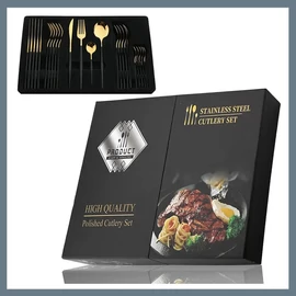 24 részes evőeszköz készlet, rozsdamentes acél - Fekete, Arany + AJÁNDÉKDOBOZ 601099521763851-FA2