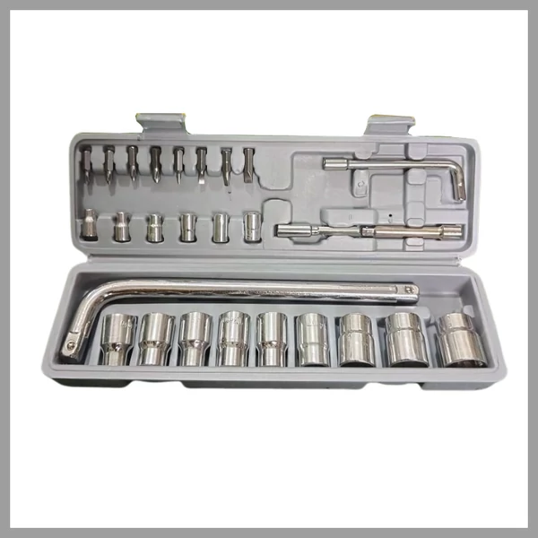 Ez a 27 darabos dugókulcs készlet praktikus és sokoldalú szerszámkészlet, amely ideális otthoni, barkács és kisebb műhelymunkákhoz. A készlet tartalmaz minden fontos alapméretű dugókulcsfejet, hosszabbító szárakat, bitfejeket és hajlított hajtókarokat, mindezt egy tartós műanyag hordtáskában.