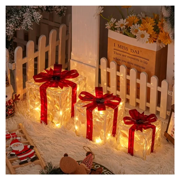 3 darabos karácsonyi világító ajándékdoboz készlet – melegfehér fény FY30295