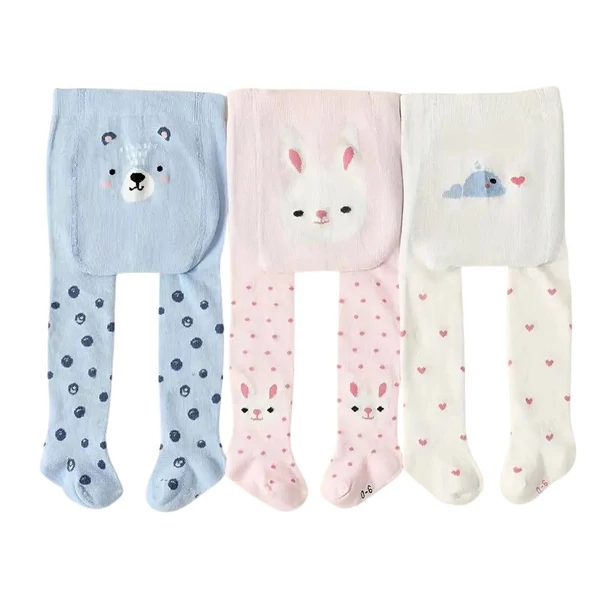 Ez a 3 darabos harisnya szett tökéletes választás kislányok számára, akik szeretik a kényelmes és puha ruhadarabokat. A harisnyák aranyos mintákkal – maci, nyuszi és szívecskék – díszítettek, így vidám megjelenést kölcsönöznek minden szettnek.