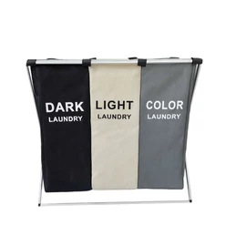 Praktikus és modern szennyeskosár, amely három különálló rekesszel segít a ruhák előválogatásában. Stabil alumínium váza és vízhatlan belső anyaga tartós használatot biztosít, miközben megakadályozza a nedvesség és szagok átszivárgását. Ideális választás családoknak, kollégistáknak és mindenkinek, aki rendszerezni szeretné a mosást.