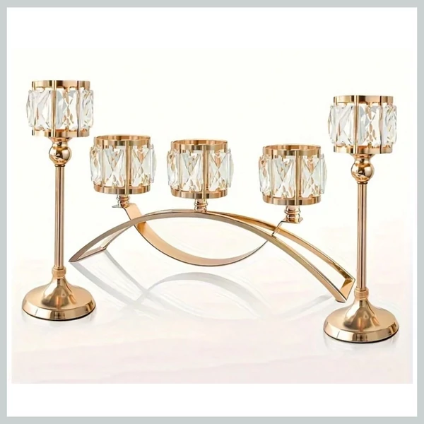 3 részes aranyszínű kristály gyertyatartó szett 75873740