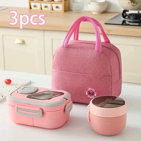 Ez a praktikus és stílusos 3 darabos ebédszett ideális választás iskolába, munkahelyre vagy piknikezéshez. A szett tartalmaz egy szigetelt ebédtáskát, egy többrekeszes ételtároló dobozt, valamint egy különálló kerek tálkát leveseknek, gyümölcsnek vagy nassolnivalónak.