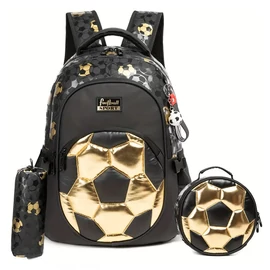 Ez a látványos és praktikus 3 részes fiús táskaszett tökéletes választás iskolakezdéshez, kirándulásokhoz vagy ajándéknak. A focilabda ihlette dizájn arany elemekkel kiegészítve sportos, mégis menő megjelenést biztosít. A nagy kapacitású hátizsák mellett egy cipzáras tolltartó és egy hordozható kézitáska is helyet kapott a csomagban, így minden felszerelés kényelmesen elfér.