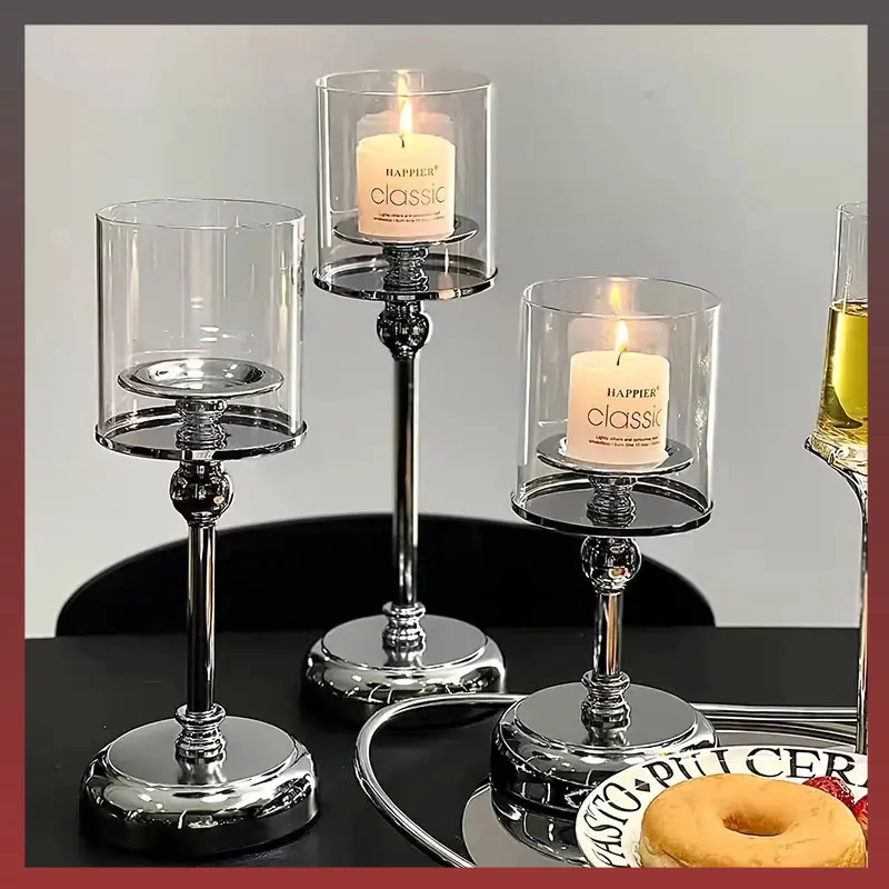 Vidd haza a klasszikus stílus és a modern fényűzés tökéletes harmóniáját ezzel a gyönyörű, 3 részes ezüst színű gyertyatartó szettel! A különböző méretű tartók egyedi megjelenést és szintkülönbséget teremtenek, amely még elegánsabbá teszi az enteriőrt – legyen szó nappaliról, étkezőasztalról vagy ünnepi dekorációról.