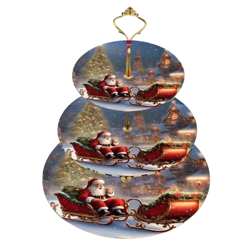 Design: Mikulás szánban, ünnepi téli városképpel a háttérben