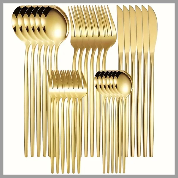 30 darabos Aranyozott Rozsdamentes Acél Evőeszköz Készlet 601099648605235