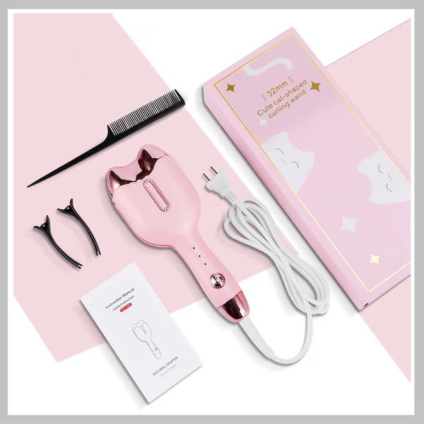 32mm aranyos macska alakú hajgöndörítő eszköz, rózsaszín