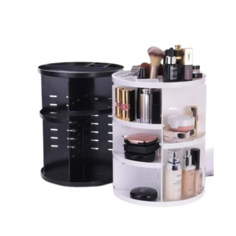 Ez a praktikus, szögletes kialakítású sminktároló állvány ideális megoldás a kozmetikumok, sminkkellékek és parfümök rendszerezett tárolására. A 360°-ban forgatható funkcióval minden könnyen elérhetővé válik, miközben átlátható és helytakarékos kialakítása rendet biztosít a fürdőszobában vagy a sminkasztalon.