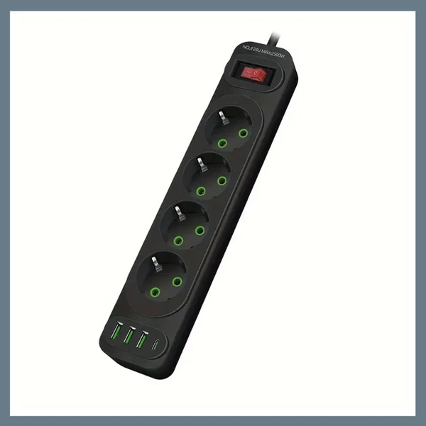 4 aljzatos hosszabbító USB-vel és Type-C gyorstöltő portokkal, fekete K24U-BLACK Főbb jellemzők: 4 db EU szabványos aljzat 2 db USB port – telefonok, tabletek töltéséhez 1.5 m hosszú tápkábel Kompakt, könnyen elhelyezhető kialakítás Ideális íróasztalra, nappaliba vagy hálószobába A kép illusztráció!
