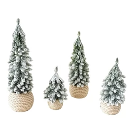 Ez a 4 darabos mini karácsonyfa szett hangulatos és természetes megjelenést kölcsönöz otthonodnak az ünnepi időszakban. A bolyhos, havas hatású ágak és a kenderkötéllel borított talp rusztikus, modern farmhouse stílust idéznek, így kiválóan illenek asztali dekorációhoz, ablakpárkányra vagy polcra.