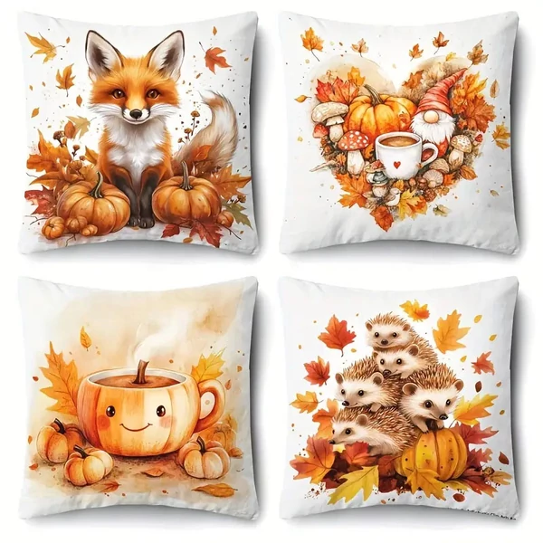 Hozz őszi hangulatot otthonodba ezzel a bájos, 4 darabos párnahuzat szettel, amely tökéletes választás nappaliba, hálószobába vagy akár teraszra is. A rusztikus farmház stílusú huzatok különleges grafikákkal díszítettek: vidám rókával, süncsaláddal, tökkel és szezonális mintákkal.