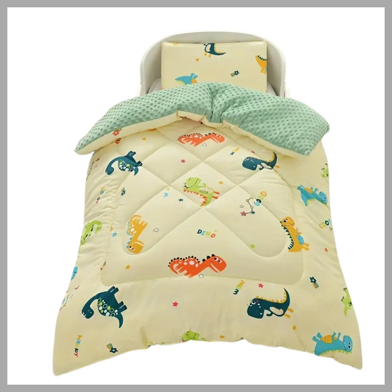 Ez a vidám dinoszaurusz mintás, 100x80 cm-es takaró ideális társ a kisgyermekek számára egész évben. Négy évszakos kialakítása révén tökéletesen alkalmazkodik a hőmérséklethez – tavasszal és ősszel kellemesen meleg, nyáron könnyed, télen pedig megbízhatóan melegen tart. Mérete kiságyakhoz igazodik, így otthoni használatra és utazáshoz egyaránt praktikus választás.