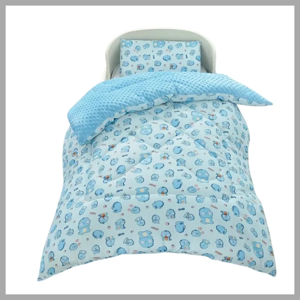 Ez a pihe-puha, égszínkék színű takaró ideális választás kiságyakhoz, egész évben használható. Négy évszakos kialakításának köszönhetően a meleg nyári éjszakákon is kellemes komfortérzetet nyújt, míg a hidegebb hónapokban melegen tartja a kicsiket. A 100% poliészterből készült borítóanyag és a szintén poliészter szálas töltet biztosítják a tartósságot, könnyű kezelhetőséget és a hosszú élettartamot.