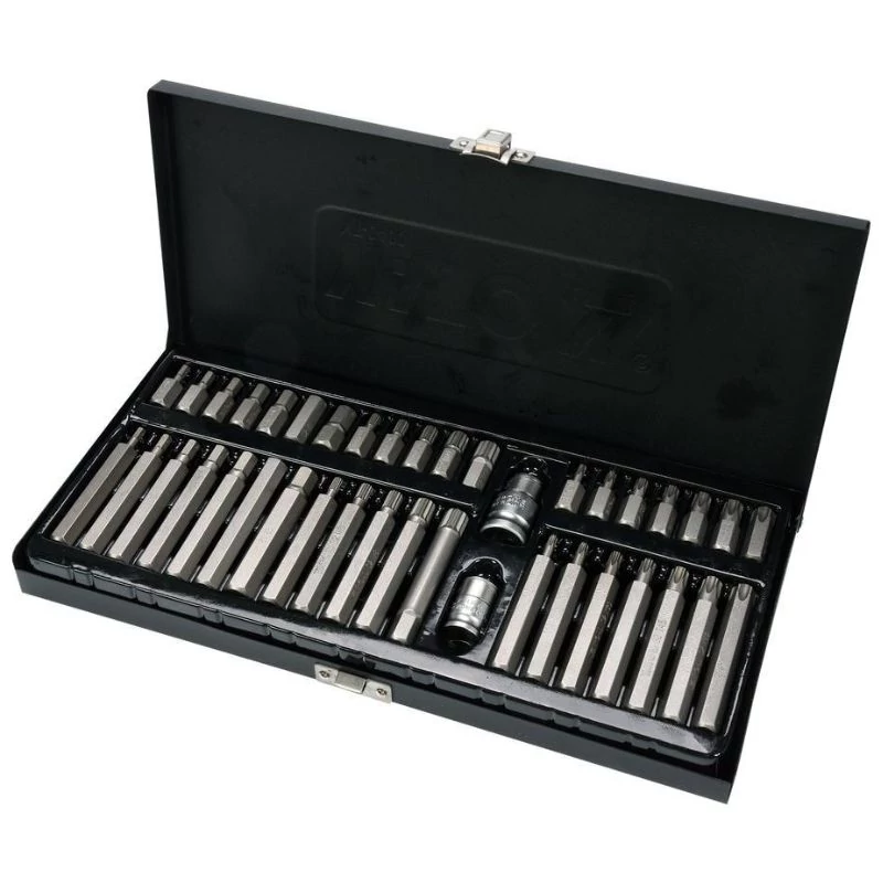 Professzionális bitkészlet speciális Torx, Spline és Hex csavarokhoz, amely ideális autóipari és műhelymunkákhoz, valamint minden olyan feladathoz, ahol precíz és tartós szerszámokra van szükség. A készlet 40 darab bitet tartalmaz különböző méretekben, így szinte minden szokványos és speciális csavarhoz megfelelő.
