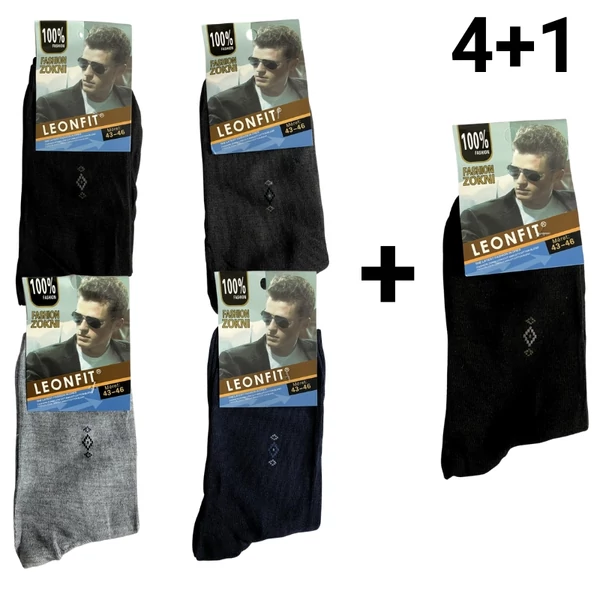 Praktikus és stílusos férfi zokni csomag, amely tartalmaz 4 pár zoknit + 1 pár ajándékba. Klasszikus színekben elérhető, így bármilyen öltözékhez könnyen párosítható.