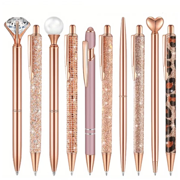 Ez a csillogó tollkészlet tökéletes választás mindazoknak, akik szeretik az egyedi, stílusos írószereket, és különleges ajándékot keresnek különféle alkalmakra.