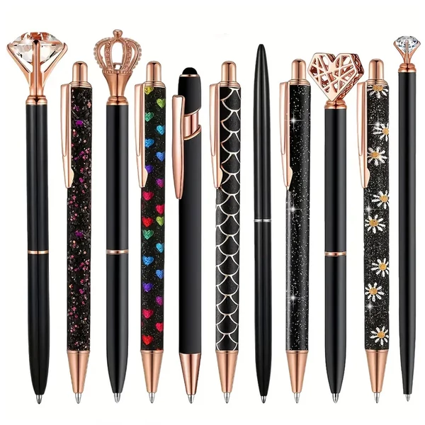 Ez a csillogó tollkészlet tökéletes választás mindazoknak, akik szeretik az egyedi, stílusos írószereket, és különleges ajándékot keresnek különféle alkalmakra.
