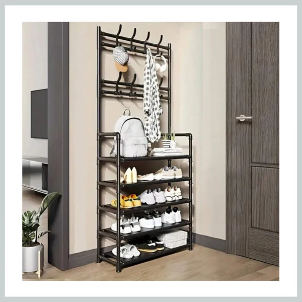 5 szintes cipőtartó állvány akasztókkal fekete 48003502f5