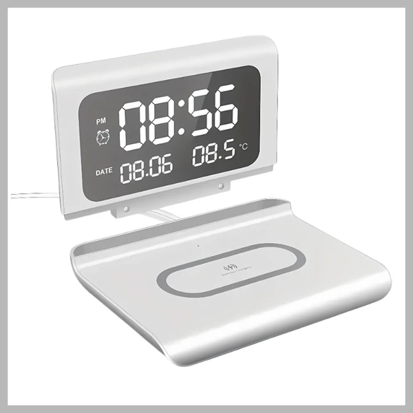 Ez a modern, multifunkciós 6 az 1-ben töltőállomás nemcsak stílusos kiegészítője lehet éjjeliszekrényednek vagy íróasztalodnak, hanem praktikus funkcióival kényelmesebbé is teszi a mindennapokat. A 15W-os gyorstöltési képességgel rendelkező vezeték nélküli töltőállomás kompatibilis iPhone, Android és Apple Watch készülékekkel, valamint dupla USB-porttal is rendelkezik más eszközök töltéséhez.