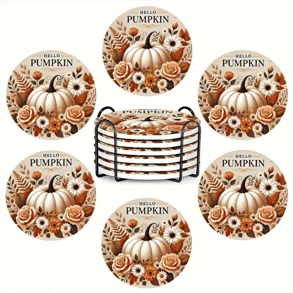6 darabos őszi kerámia alátét szett – sütőtök és virág mintával PU2393247