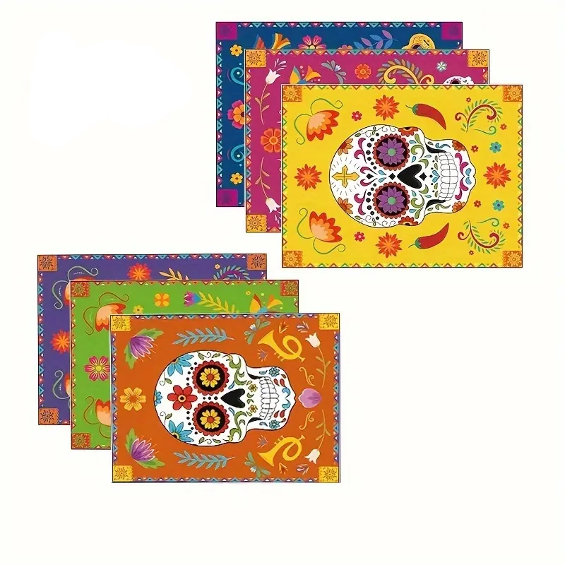 6 darabos színes asztali alátét szett – “Cukorkoponya” mintás 601099717505845