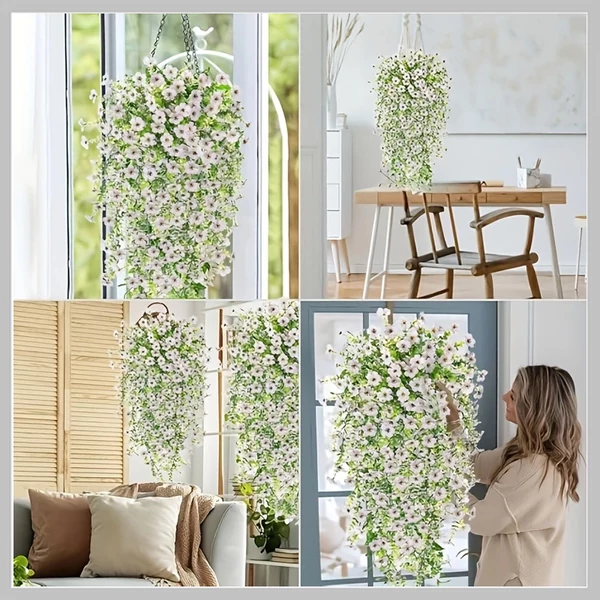 Ez a 6 darabos bohém stílusú művirág készlet fehér virágokkal és zöld lombozattal ideális választás kültéri és beltéri dekorációhoz, valamint különleges eseményekhez, mint esküvők, partik, Valentin-nap, Anyák napja és ballagási ajándékok. Az UV-álló anyagnak köszönhetően a virágok hosszú távon megőrzik friss megjelenésüket, és ellenállnak a napsütésnek, így bármilyen környezetben ideálisan alkalmazhatók. Esztétikus, függő növények formájában, tökéletes virágdísz minden alkalomra.