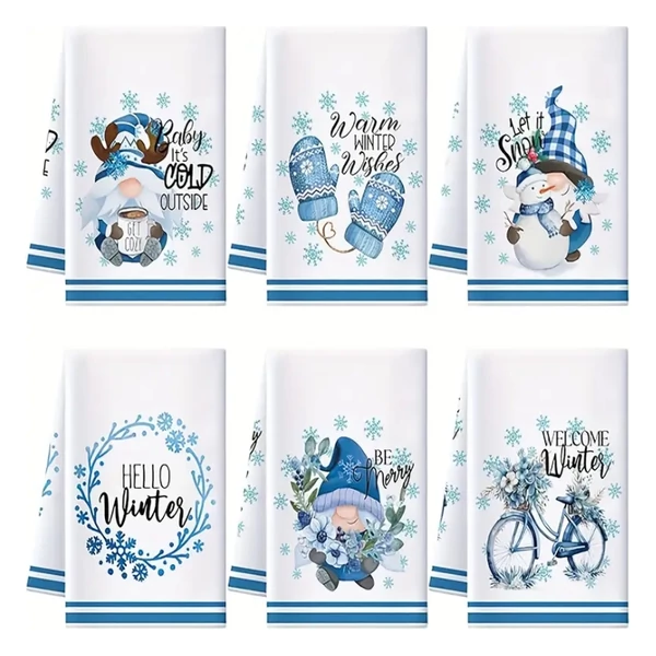 6 db téli konyhai törölköző – hóember és manó mintás, 45 × 70 cm NP422900