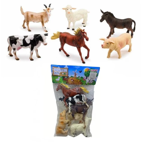 6 db háziállat figura – a készlet a farmon található háziállatokat tartalmazza: juh, sertés, szamár, kecske, ló, tehén