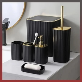 6 részes fekete fürdőszobai kiegészítő szett TT256806