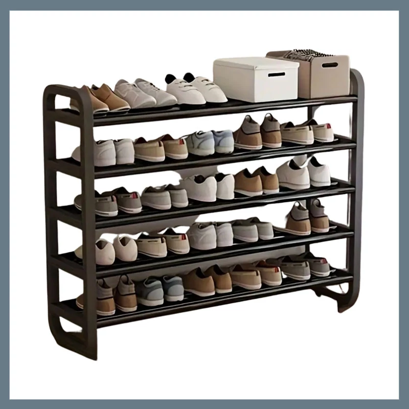 6 szintes nyitott cipőtároló polc – fekete, 75 × 73 cm YX1429869-2