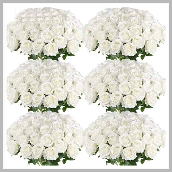 60 db mesterséges rózsa, szárakkal – fehér GA2072486