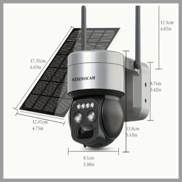 Kültéri vezeték nélküli biztonsági kamera kettős lencsével, napelemes és USB-s tápellátással, AI mozgásérzékeléssel és kétirányú hangkommunikációval