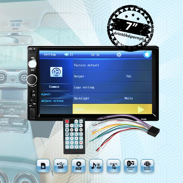 7 inch érintőképernyős rádió, zene- és videólejátszó, 12V, távirányítóval - 7010B