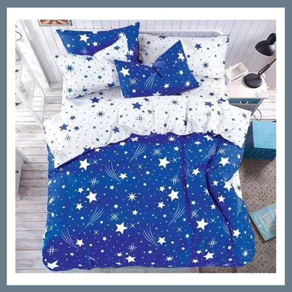 7 részes PLÜSS ágyneműgarnitúra, hullócsillag mintás, sötétkék HCS-S